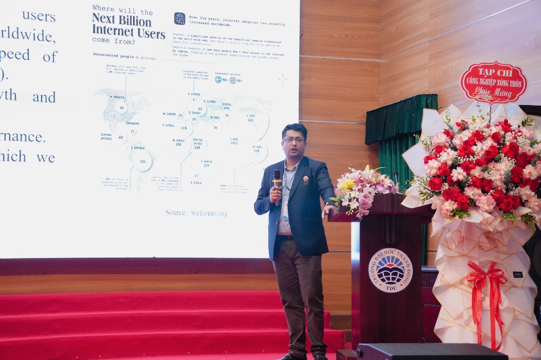 Trong phiên toàn thể ngày 11/11/2025, nhiều báo cáo khoa học đã mang đến góc nhìn sâu sắc về chuyển đổi số, kinh tế vĩ mô, tài chính, thương mại và nông nghiệp bền vững. Về chuyển đổi số và quản trị kinh tế, TS. Lê Đăng Doanh (Trường Đại học Thành Đông) với bài “Vietnam’s Digital Transformation” nhấn mạnh tính cấp bách của việc triển khai chiến lược chuyển đổi số quốc gia, hướng tới Chính phủ điện tử và xã hội số, trong đó công nghệ là động lực then chốt của phát triển bền vững. GS.TS. Gan Eng Chye (Đại học Lincoln, New Zealand) trong bài “Shaping the Future: Digitalization and the Transformation of Global Business” chỉ ra tác động mạnh mẽ của số hóa tới mô hình kinh doanh toàn cầu, phân tích các trường hợp điển hình như Alibaba, Pinduoduo và MoMo, đồng thời cảnh báo rủi ro về an ninh mạng và tính bền vững. TS. Nguyễn Phương Bắc (Trường Đại học Thành Đông) trong bài “Development of Digital Technology Zones within the Digital Export and Business Ecosystem in the Red River Delta Region” tiếp tục khẳng định vai trò trung tâm của AI và dữ liệu thời gian thực trong hoạch định chính sách, kiến nghị đẩy nhanh cải cách pháp luật về dữ liệu và thuế số. TS. Amogh Ghimire (Đại học Xiamen, Trung Quốc) với nghiên cứu “Narrowing the Digital Divide through Regional Cooperation: A Quasi-Experimental Analysis of ASEAN Countries” sử dụng mô hình PSM – DID, chứng minh hợp tác chính sách khu vực giúp thu hẹp khoảng cách số và thúc đẩy đổi mới trong ASEAN.
