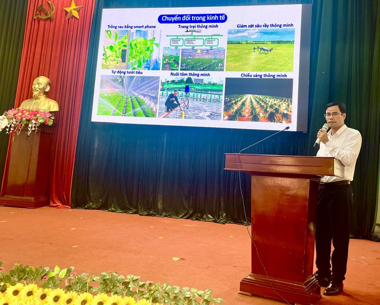 Đồng chí Vũ Đại Thắng, Phó Giám đốc Sở Khoa học và Công nghệ TP Hải Phòng trình bày tham luận “Nội dung chủ yếu thực hiện NQ57 và chuyển đổi số cấp xã”