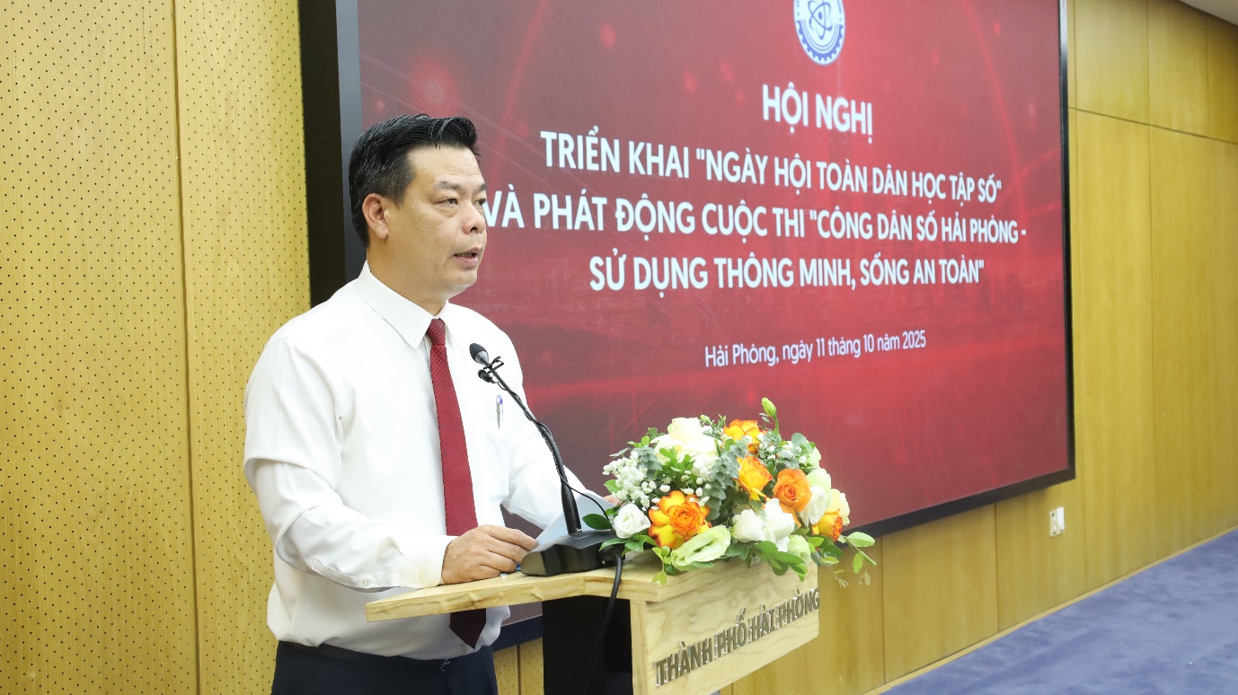 Thực hiện Kế hoạch số 478-KH/TU ngày 01/6/2025 của Thành ủy Hải Phòng về triển khai Phong trào “Bình dân học vụ số”; chiều 11/10, Sở Khoa học và Công nghệ (KH&CN) thành phố Hải Phòng tổ chức Hội nghị triển khai “Ngày hội toàn dân học tập số” và phát động Cuộc thi “Công dân số Hải Phòng - Sử dụng thông minh, sống an toàn” nhằm hưởng ứng Ngày chuyển đổi số Quốc gia (10/10).